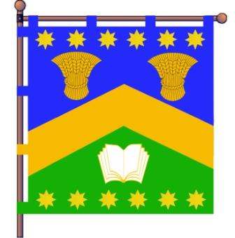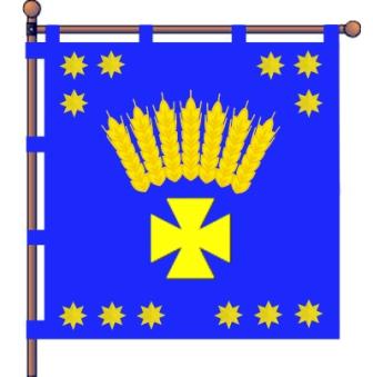 у 2-ому синьому полі – золотих колосів пшениці із шістьма восьмипроміневими золотими зірками.